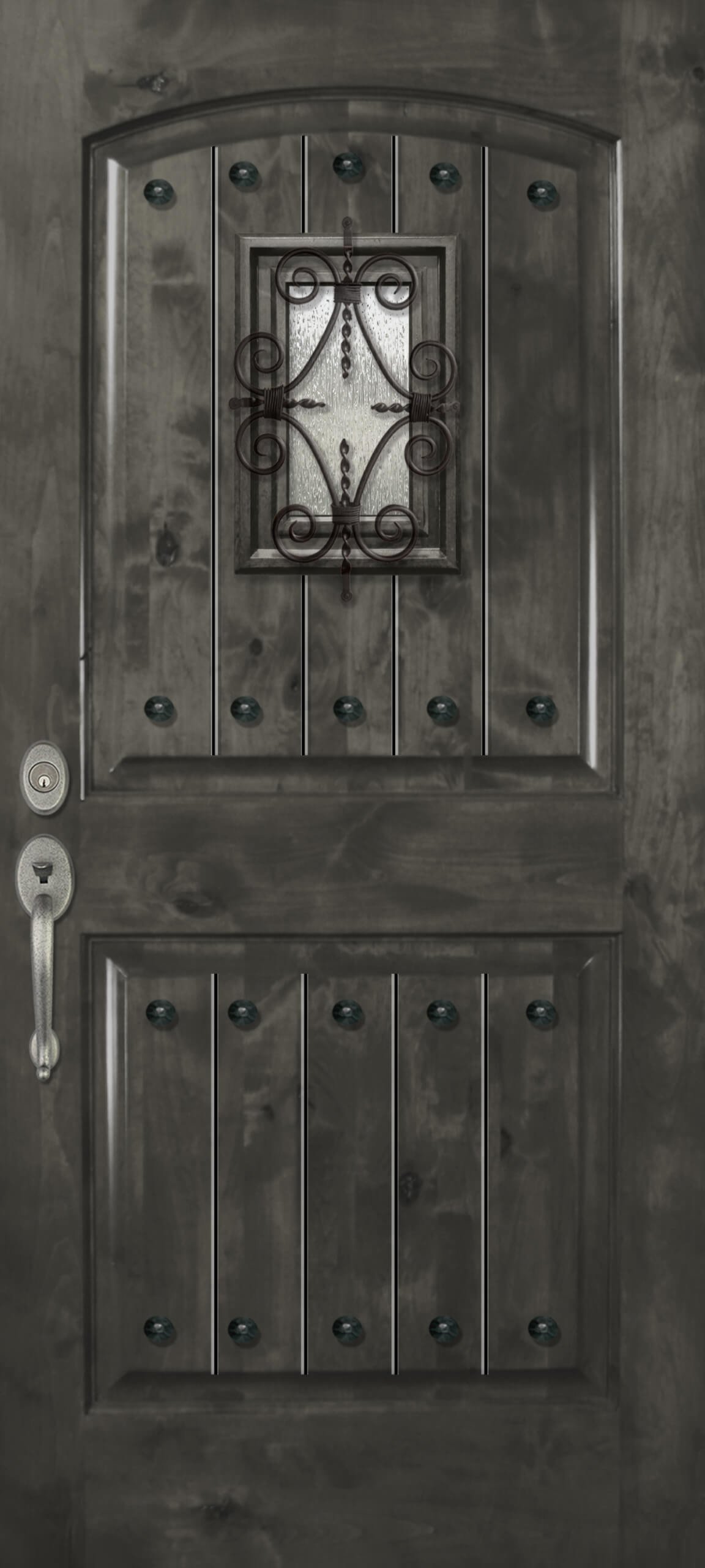 Arch 2 Panel with Speakeasy & Clavos – 6’8″ Wood Door